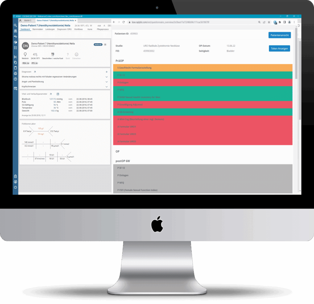 Patient data is automatically synchronized between the platform and other systems, giving hospital staff immediate access to questionnaire results.