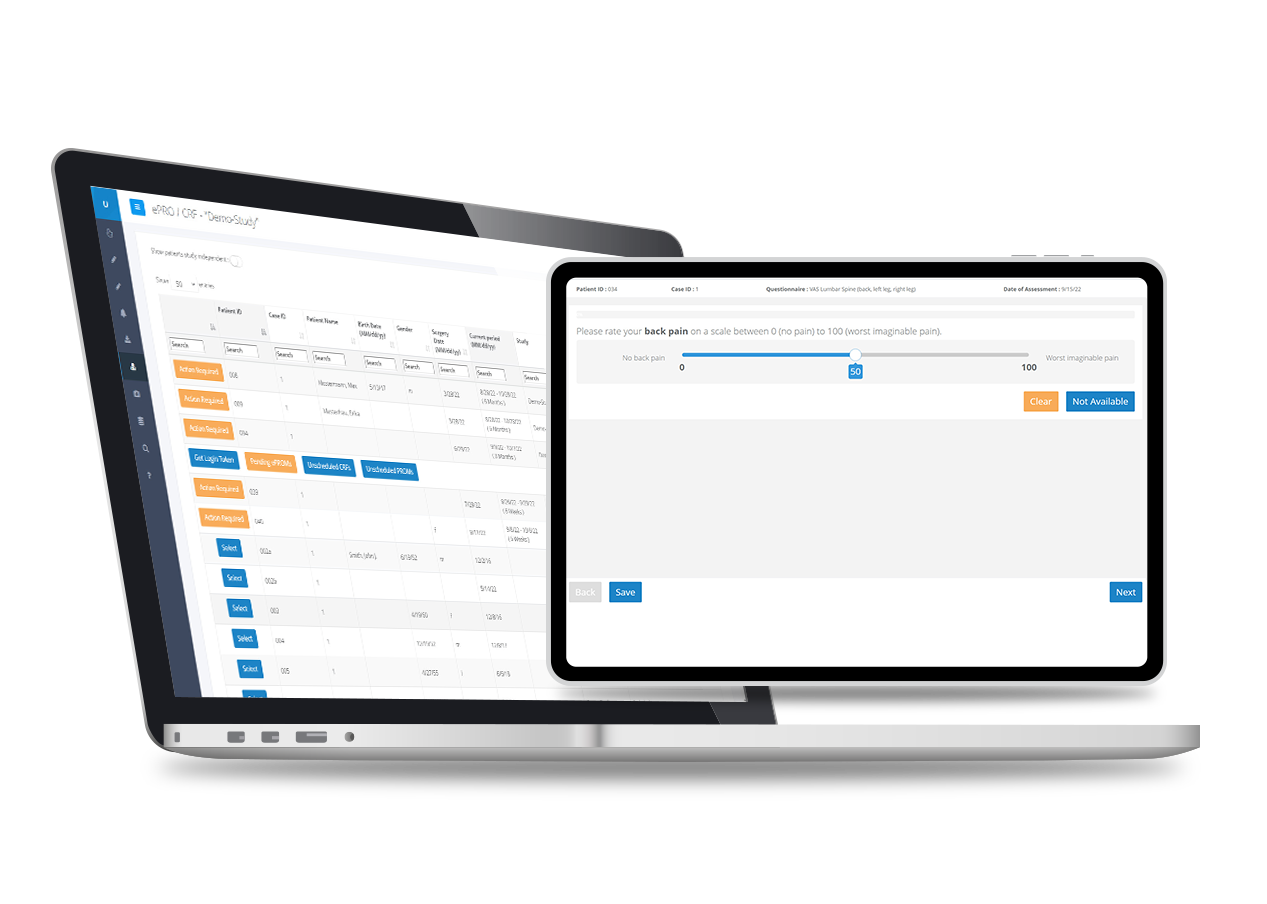 The software supports the collection of validated ePRO instruments for all medical subspecialties.