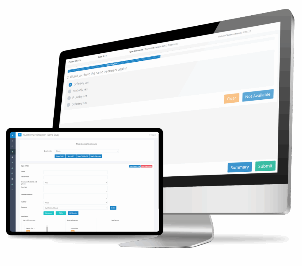 Verfügbar als cloud-basierte oder KIS-integrierte Lösung automatisiert die RAYLYTIC-Plattform die Erhebung und Auswertung medizinischer Fragebögen. Ziel ist die Generierung von Daten höchster Qualität, um zu bewerten, wie sich Behandlungen auf die Lebensqualität Ihrer Patienten auswirken.