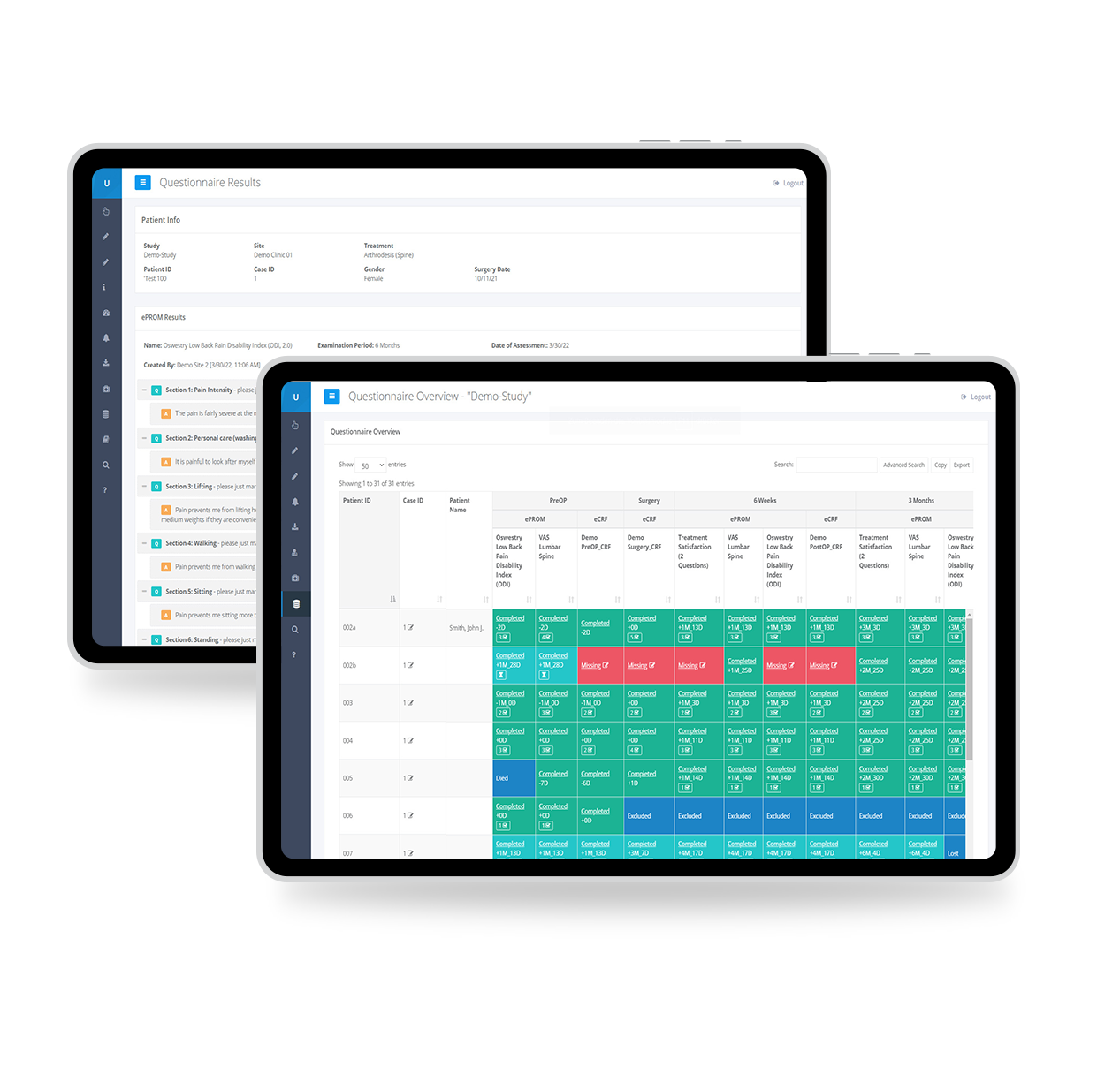 Patienten können Fragebögen von zuhause aus, bei außerplanmäßigen Krankenhausbesuchen oder in der Sprechstunde selbst mittels einer integrierten Tabletlösung ausfüllen.
